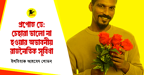 নির্বাচনী বৈতরণী পার হওয়ার জন্য প্রার্থী যেভাবে ভোটারের পা ধরে ‘প্রপোজ’ করে, ‘এবার একটা সুযোগ দিন, সব করে দেব,’ ঠিক একইভাবে প্রেমিকরা প্রপোজ ডে-তে বলে, ‘একবার হ্যাঁ বলো, চাঁদ-তারা এনে দেব।’ মজার ব্যাপার হলো, নির্বাচনের পর প্রার্থী যেমন ভোটারকে চেনে না, বিয়ের পর প্রেমিকও তেমনি চাঁদ-তারা তো দূরে থাক, ঠিকমতো আলু-পেঁয়াজও এনে দেয় না!