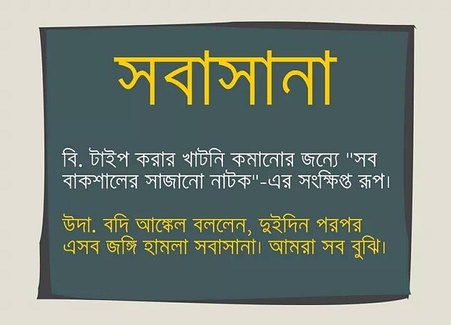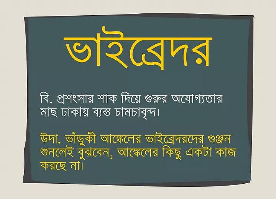 এত এত শব্দ থাকার পরও মাঝে মাঝে নিশ্চয়ই কিছু অনুভূতির বর্ণনার জন্য আপনি ভাষা খুঁজে পান না? বাংলা ভাষার শব্দভান্ডারকে যদি মাঝে মাঝে ছোট মনে হয়ে থাকে, তাহলে অভিনব সব মজার শব্দ শিখে নিতে পারেন নতুন শব্দ নামক ফেসবুক পেজ থেকে। বাংলা ভাষায় নতুন নতুন শব্দ যোগ করাই তাদের উদ্দেশ্য, তবে মুখ্য উদ্দেশ্য অবশ্যই ব্যঙ্গ-বিদ্রুপ! নিচে নতুন শব্দাবলি থেকে eআরকির পাঠকরাও কিছু শিখে নিতে পারেন!
