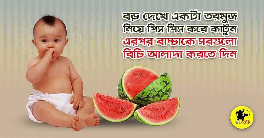 ৮) বড় দেখে একটা তরমুজ নিয়ে পিস পিস করে কাটুন। এরপর বাচ্চাকে দিন সবগুলোর বিচি আলাদা করতে। খেয়েও আরাম পাবেন, বাচ্চাও থাকবে ব্যস্ত!