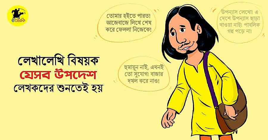 মনে করুন, আপনি একজন নতুন বা তরুণ লেখক। অনলাইনে বা ব্লগে টুকটাক লেখালেখি করেন। দুয়েকটা বইও বের হয়েছে কিংবা হবে হবে ভাব। এই পর্যায়ে থাকলে আশেপাশের 'এক্সপার্ট'দের কাছ থেকে কিছু উপদেশ আপনার শোনাই লাগবে। নিচে এমনই কিছু উপদেশ একেবারে মাগনা দেয়া হলো-