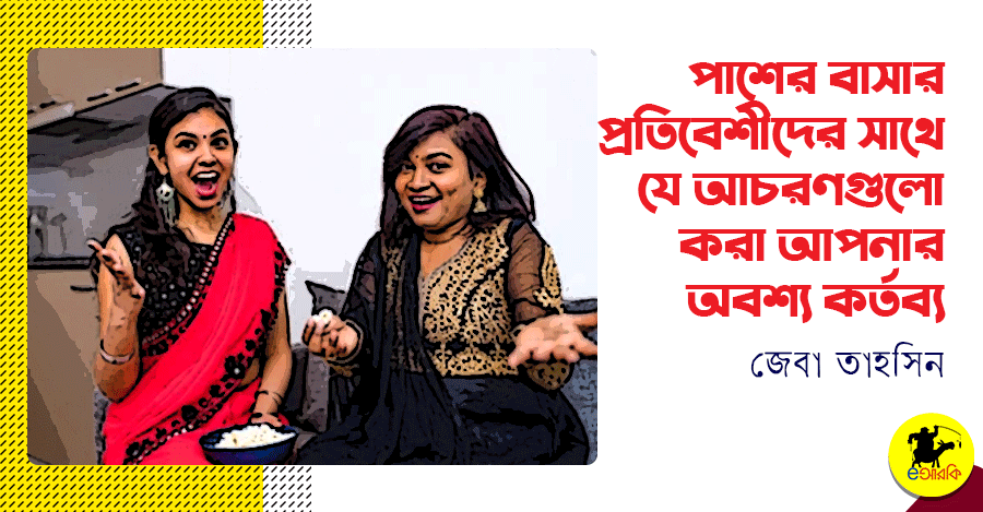 প্রতিবেশি হিসেবে শুধু পাশের বাড়িতে থাকলেই হয় না। রয়েছে প্রতিবেশি হিসেবে নানা শিষ্টাচার, নানাবিধ দায়িত্ব-কর্তব্য। কী সেইসব আচার-ব্যবহার-কর্তব্য? জানাচ্ছেন আমাদের প্রতিবেশী স্পেশালিস্ট জেবা তাহসিন।