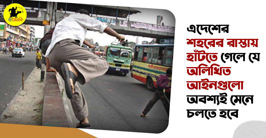 আমাদের গোটা জীবনটাই হচ্ছে নিয়মে বাঁধানো। এই নিয়মমাফিক জীবনে হাঁটা-চলাও হয় নিয়ম মেনেই। আসুন জেনে নিই বাংলাদেশ এর রাস্তায় হাঁটার এই ১০ নিয়ম কী কী।