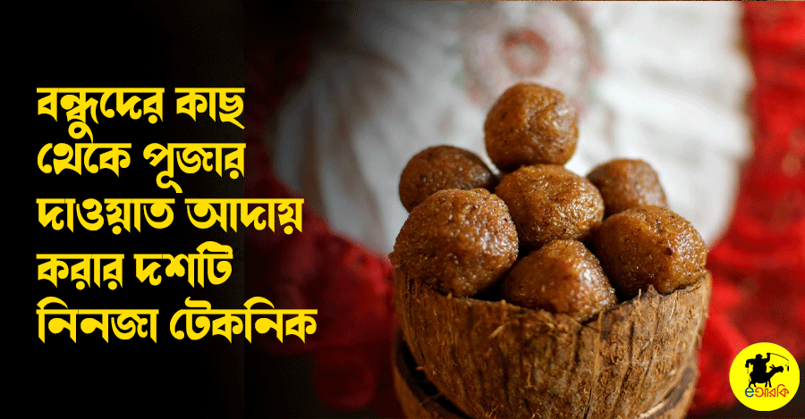 দুর্গাপূজা মানেই পেট ভরে খাওয়া-দাওয়া। ভুঁড়িভোজ ছাড়া বাঙালির উৎসব অসম্পূর্ণ। পয়লা বৈশাখ থেকে দুর্গাপূজা যাই বলুন না কেন, খাবার ছাড়া বাঙালির জন্য তা অর্থহীন। ষষ্ঠী থেকে দশমী নতুন নতুন জামা কাপড়ের সঙ্গে খাবারের তালিকাটা ও আগে থেকে করাটা খুবই প্রয়োজন। আর কোন খাবার কোথায় খাবেন সেটাও ঠিক করে ফেলা জরুরী। তাই eআরকির পক্ষ থেকে আপনাদের জন্য দেওয়া হলো বন্ধুদের কাছ থেকে পূজার দাওয়াত আদায় করার ১০টি নিনজা টেকনিক!