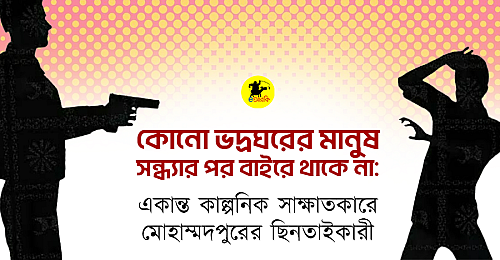 বলিউডের মিল-মোহাব্বত এর সিনেমার প্রসঙ্গ উঠলেই যেমন সবার আগে মনে পড়ে- ‘হাম সাথ সাথ হ্যায়’, তেমনি ছিনতাই এর প্রসঙ্গে ‘ক্ল্যাসিক’ ধারায় সবার আগে চলে আসে মোহাম্মদপুরের নাম। এখানকার ছিনতাইকারীরা পেশাটাকে একরকম শিল্পের পর্যায়ে নিয়ে গেছে। বেশ কাঠখর পুড়িয়ে(সে প্রসঙ্গ শেষে আছে) আমাদের প্রতিনিধি অ্যাপয়েন্টমেন্ট নিয়েছিলেন একজন জোষ্ঠ্য(অভিজ্ঞতার ভিত্তিতে) ছিনতাইকারীর।
