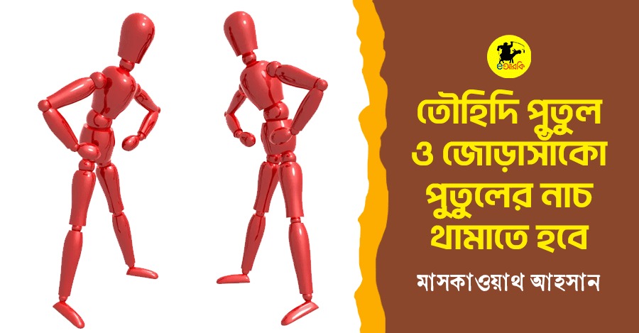 একইরকম ভিখিরি তৌহিদি পুতুলেরা মাজারে শতবছর ধরে দরিদ্র মানুষের সিন্নি আর আল্লাহ'র ইশকে অপার্থিব আনন্দের সুর বোঝে না! সে বোঝে মাজার ভেঙ্গে জমি দখল, মাজার না থাকলে চাঁদা যেন তার ৫৬০টি মডেল মসজিদের দানবাক্সে জমা হয়; তার দঙ্গলবাজিতে ভয় পেয়ে সরকার যেন খাসজমি দেয়; এইসব ধান্দার কথা না বলে, ইসলাম খতরে মে হ্যায় গল্প বলতে আসে। চড়ুই পাখি আকাশের দিকে পা তুলে যেমন কল্পনা করে সে, পা দিয়ে আকাশের ভেঙে পড়া ঠেকিয়ে রেখেছে; তৌহিদি পুতুল তেমনি বাউলের ওপর চড়াও হয়ে কল্পনা করে সে ইসলামের ভেঙে পড়া ঠেকিয়ে রেখেছে। জোড়াসাঁকো পুতুল যেমন শিবসেনার বালিশে ঠেস দিয়ে শিবির খুঁজে ভাবে কালচারের ভেঙ্গে পড়া ঠেকিয়ে রেখেছে।