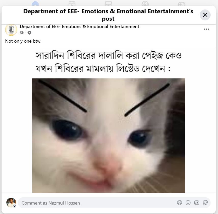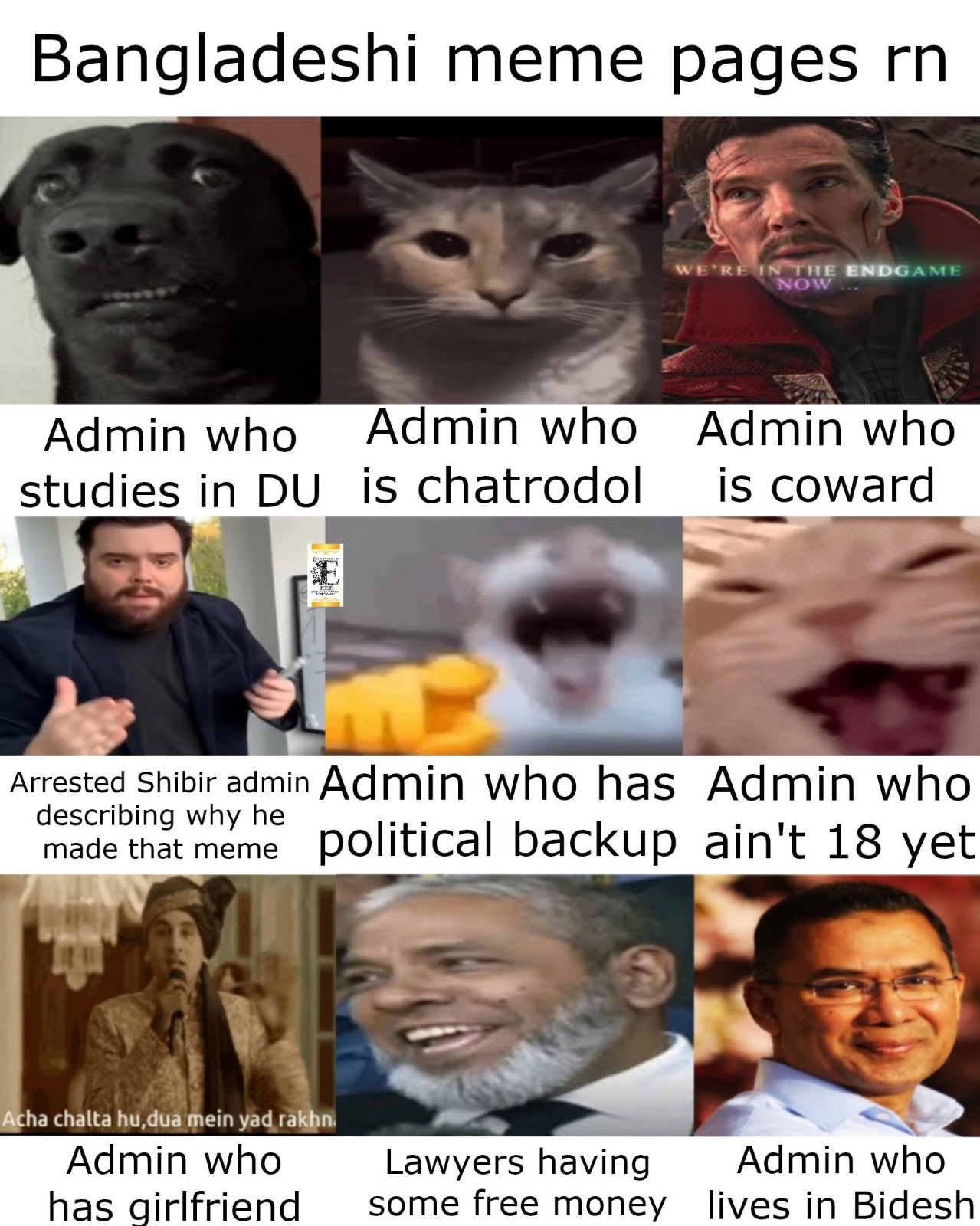 ডাকসু ভিপি ১৫ টি ফেসবুক আইডি ও ১৪ টি ফেসবুক পেজের বিরুদ্ধে মামলা ঠুকেছেন (তথ্যসূত্র: প্রথম আলো)। এই মামলায় লাভের মধ্যে লাভ যা জয়েছে মিমাররা সবাই মাঠে নেমে পড়েছে নিজেদের মিম নিয়ে! যেন মিমই বলছে, যার কেউ নাই তার মিম আছে। সেইসব মিমের খনি থেকে সেরা কিছু মিম তুলে ধরা হলো eআরকির পাঠকদের জন্য