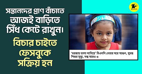 কেন আয়শা আক্তারের মতো ফুটফুটে একটা প্রাণবন্ত শিশুর বেঘোরে পুড়ে মরতে হয়? বাংলাদেশে জন্মানোই কি তার অপরাধ? নাকি তার বাবা বিএনপি করে দেখে সেটাই অপরাধ। কারও বাবা এনসিপি, জামায়াত, আওয়ামী লীগ করাও কী অপরাধ? অপরাধ আজকাল কীসে মাপা হয়! কী তার নিক্তি? কী তার একক?