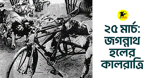 সেই কালরাতে জগন্নাথ হলের মাঠটা খালি একটা মাঠ আছিল না, ওটা হয়া গেছিল একটা কসাইখানা। ছাত্রদের লাইনে খাড়া করায়া যখন ব্রাশফায়ার করা হইতেছিল, তখন ঘাতকরা দাঁত কেলানি দিয়া হাসতাছিল এই ভাইবা যে, মাথাগুলা কাইটা দিলেই বাঙালি জাতি চিরদিনের লাইগা পঙ্গু হয়া যাইব। হেরা বুঝতে পারে নাই, ড. দেবের শেষ প্রশ্ন ‘কী চাও, বাবা?’ কিম্বা ড. গুহঠাকুরতার রক্তে ভেজা সেই ঘাস থেইকাই জন্ম নিবে এক অপরাজেয় বাংলাদেশ।