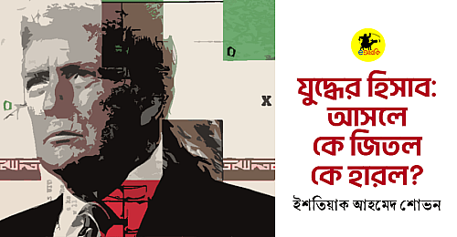 দিনশেষে এই যুদ্ধের ফলাফল কী দাঁড়াল? বড় বড় গোল্লা। আমেরিকা-ইসরায়েল জিতেছে বলে আনন্দ করছে, অথচ তাদের পকেট ফাঁকা। ইরান হেরেছে বলে শোক করছে, অথচ তাদের রাজনীতির ভিত আবার শক্ত হয়েছে। মাঝখান থেকে লাভ হলো কার? ওই যে তেলের দাম বাড়ায় রাশিয়া আর সৌদির পকেটে কিছু বাড়তি কাঞ্চন ঢুকল। সাধারণ মানুষ যেমন আগে মারা পড়ত, এবারও তাই হলো। জয়ী আসলে কেউ নয়। এই যুদ্ধবিরতি যেন এক পশলা বৃষ্টির পর রোদের দেখা পাওয়া—সবাই একটু জিরিয়ে নিচ্ছে ঠিকই, কিন্তু আকাশের কোণে মেঘের ঘনঘটা এখনো কাটেনি। পৃথিবীটা আবার সেই পুরনো নিয়মে চলতে শুরু করল, যেন কিছুই হয়নি। কেবল কিছু শূন্য কোল আর কিছু ভাঙা ঘর ইতিহাসের সাক্ষী হয়ে রইল।