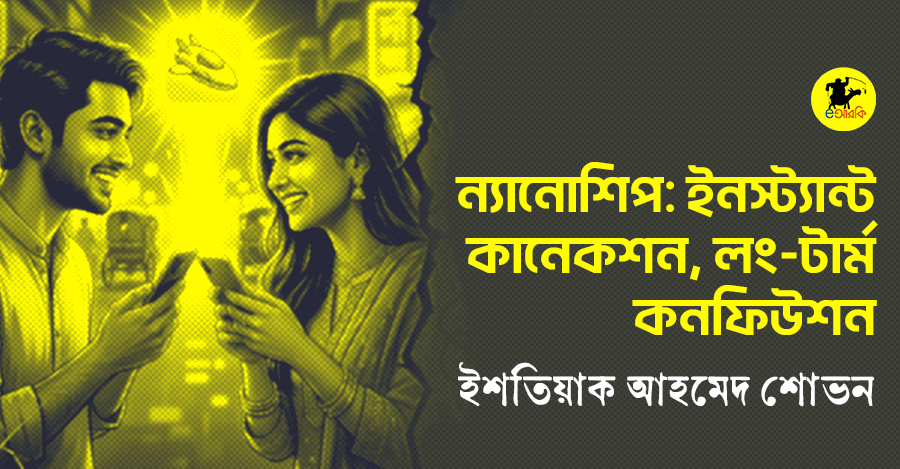 শোনেন, জীবনটা এখন হইলো গিয়া হাইওয়ে। সবাই দৌড়ের ওপর। থামার টাইম নাই, মায়ার গিট দেওয়ার সময় কই? আগে মানুষ প্রেম করতো, এখন মানুষ শিপ চালায়। রিলেশনশিপের জাহাজ যখন ফুটা হইয়া ডুবতে বসলো, তখন বাজারে আসলো সিচুয়েশনশিপ। কিন্তু সেইটাও নাকি এখনকার পাবলিকের কাছে অনেক লম্বা মনে হয়। তাই আমদানি হইলো ন্যানোশিপ।