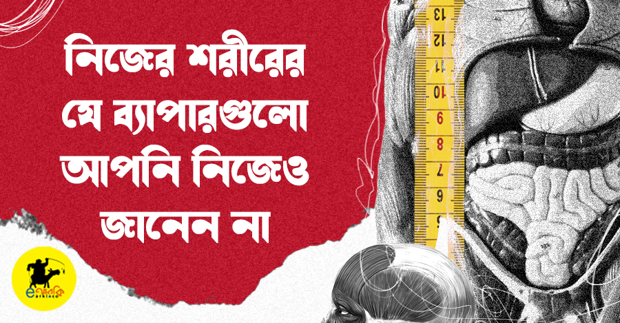 নিজের শরীর অধিকাংশ মানুষেরই পছন্দ হয়না। শরীর যতই ফিট থাকুক না কেন, আয়নার সামনে দাঁড়ালে চোখে একটা না একটা খুঁত ধরা পড়েই, আর তা নিয়ে বাড়তে থাকে ইনসিকিওরিটি। তবে রং-আকৃতি-গড়ন নির্বিশেষে যেকোন মানবদেহ নিয়ে এই অদ্ভুত তথ্যগুলো জানতে পারলে হয়তো আপনার শরীর নিয়ে এই ইনসিকিওরিটি একটু হলেও দূর হতে পারে!