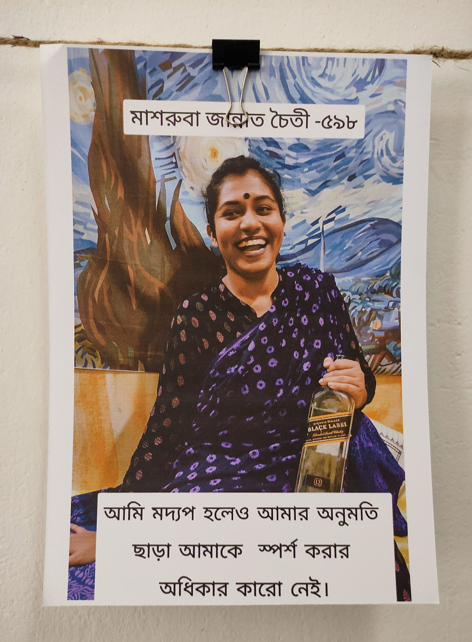 যৌন সম্পর্ক কিংবা কোনো ধরনের যৌন ক্রিয়ার আগে অনুমতির বিষয় নেয়া নিয়েও কথা বলেছেন একজন। মদের বোতল হাতে নিয়ে এক প্রতীকি ছবিতে তিনি লিখেছেন, ‘আমি মদ্যপ হলেও আমার অনুমতি ছাড়া আমাকে স্পর্শ করার অধিকার কারও নেই।‘
