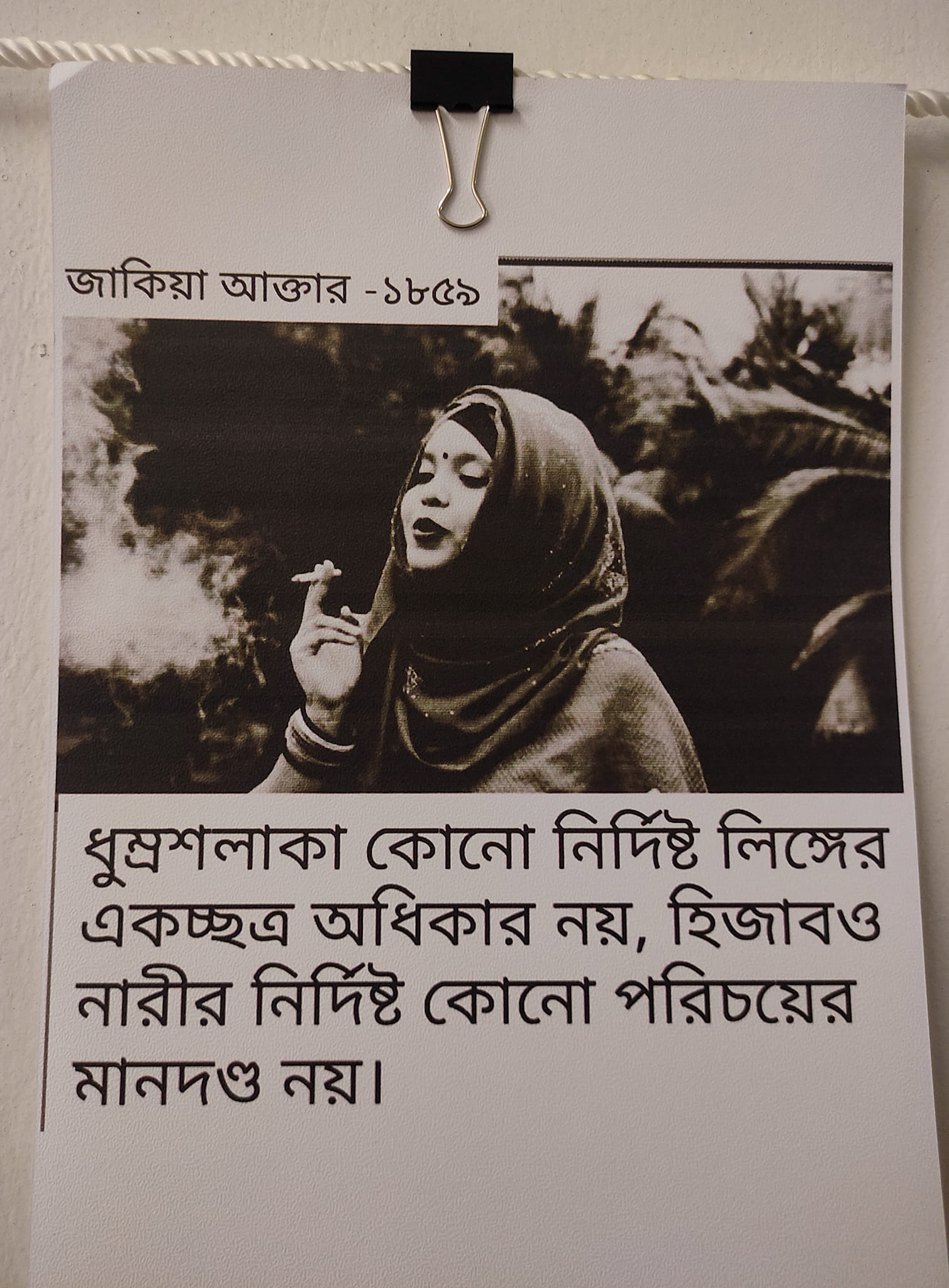 হিজাব পরে ধুমপানরত এক ছাত্রী যেমন বলতে চেয়েছেন, সিগারেট কোন নির্দিষ্ট লিঙ্গের অধিকার নয়। হিজাবও কারও উপর চাপিয়ে দেয়ার বিষয় নয়। দুটিই ব্যক্তির ব্যক্তিগত স্বাধীনতা। সে পুরুষ হোক কিংবা নারী।