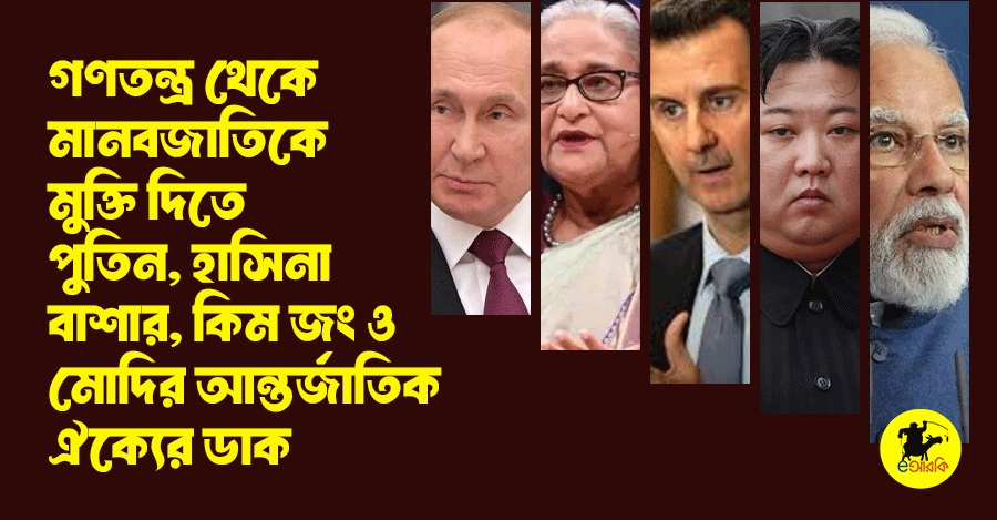 গণতন্ত্র যে ভেড়াদের শাসন করার পদ্ধতি, সেটা বুঝতে পেরে যুগে যুগে নানা স্বৈরাচার এসে পৃথিবীকে নিজেদের মতো শাসন করেছে। তবে, একই সময়ে একাধিক স্বৈরশাসক এক সঙ্গে পৃথিবীতে শাসন করছে, এমনটা আগে আমরা হয়তো দেখিনি। বর্তমান সময়ে পুতিন, হাসিনা, বাশার, কিম জং ও মোদি মিলে ঠিক করেছেন পৃথিবীকে গণতন্ত্রের গ্রাস থেকে মুক্তি দিতে, এবং এজন্য তাদের কোনো বিকল্প নেই।