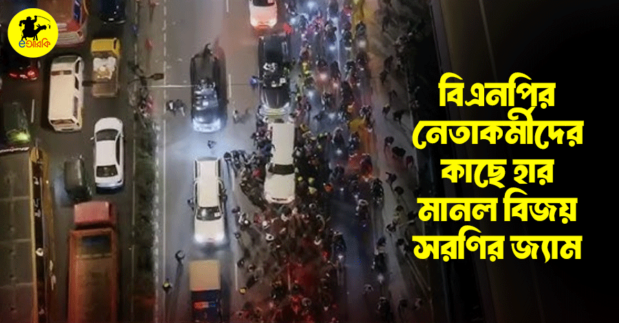 এই জ্যামে আটকে থাকা গাড়িগুলোও যেন নিজেদের সৌভাগ্যবান মনে করছিল। আমরা বিজয় সরণিতে আটকে থেকে বোর্ড ছিলাম এতদিন, কাল নতুন রেকর্ডের সাক্ষী হলাম। আমাদের শরীরে ধুলো জমেছে ঠিকই, কিন্তু এই ধুলোতে আছে গর্বের পরশ। এই ধুলো ইতিহাসের অংশ হয়ে থাকবে। কোনো কোনো গাড়ি তো ইঞ্জিন বন্ধ করে বিশ্রাম নিতেও শুরু করেছিল, যেন দীর্ঘদিনের ক্লান্তি দূর করার সুযোগ পেয়েছে।