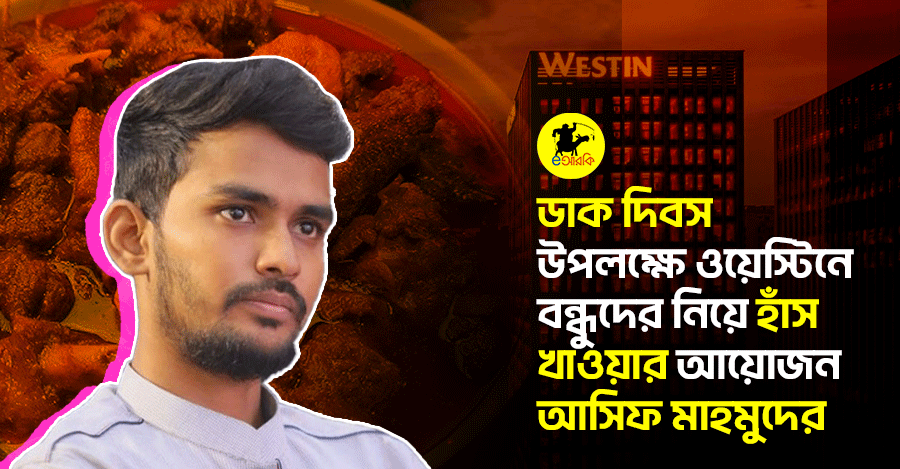 এই আয়োজন সম্পর্কে নিজের ফেক আইডি থেকে তিনি বলেন, আজ বিশ্ব ডাক দিবস শুনে খুব ভালো লাগল। সকালেই জানতে পারি ব্যাপারটা। এরপরই বন্ধুদের নিয়ে ডাকের মাংস খাওয়ার উদ্দেশ্যে নীলা মার্কেট যাই। কিন্তু সেখানে দোকান বন্ধ থাকায় ওয়েস্টিনে আয়োজন করি।