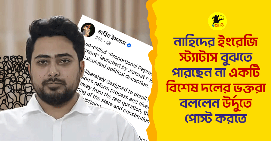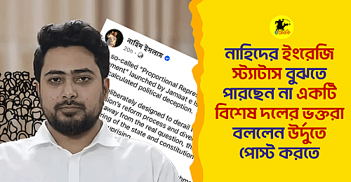 এদিকে নাহিদ ইসলাম জানিয়েছেন, তিনি মূলত ইংরেজিতে লিখেছেন আন্তর্জাতিক অডিয়েন্সের জন্য, যাতে জামায়াতের চাওয়া জটিল পিআর কাঠামো বাইরের দুনিয়াও বুঝতে পারে। তবে তিনি এটিও জানিয়েছেন যে বিশেষ দলের ভক্তদের অনুরোধে এখন থেকে হয়তো multi-lingual clarification campaign চালু করবেন—সকালে ইংরেজি, বিকেলে উর্দু, আর রাতে ইমোজিতে সারসংক্ষেপ দেবেন।