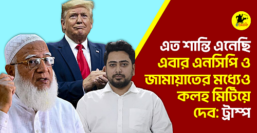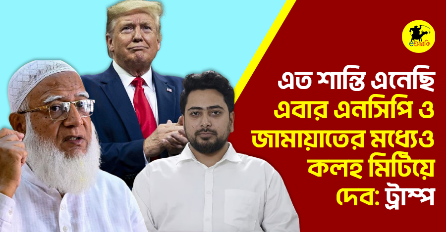 সামাজিক যোগাযোগ মাধ্যম সরগরম এনসিপি ও জামায়াতের মধ্যকার মান-অভিমান নিয়ে। এক গ্রুপ আরেক গ্রুপকে দেখলেই রেগে যাচ্ছেন, করছেন বিষোদগার! দুই দলের এই মনোমালিন্য চোখ এড়ায়নি শান্তির প্রতীক পায়রা'র মনুষ্য রূপ, মাচাদো'র অনুপ্রেরণা, মান- অভিমান নিরসন বিষয়ে সম্ভাব্য ভবিষ্যৎ নোবেল বিজয়ী ডোনাল্ড ট্রাম্পের চোখকে। তিনি ব্যাপক আগ্রহ প্রকাশ করেছেন এমন কঠিন কলহ নিরসনে নিরলসভাবে ভূমিকা রাখার ব্যাপারে। শেষ খবর পাওয়া পর্যন্ত ট্রাম্প নিজের ব্যক্তিগত এয়ারক্রাফট নিয়ে বাংলাদেশের উদ্দেশ্যে রওনা দিয়েছেন।