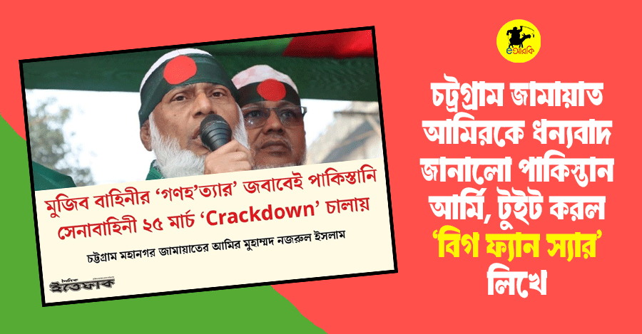 চট্টগ্রাম থেকে সরাসরি রাওয়ালপিন্ডি—মতাদর্শের এই ঐতিহাসিক সেতুবন্ধনের সাক্ষী হলো বিশ্ববাসী। সম্প্রতি এক সমাবেশে চট্টগ্রাম জামায়াত আমির দাবি করেন, মুজিব বাহিনীর গণহত্যার জবাব দিতেই পাকিস্তানি সেনাবাহিনী ২৫ মার্চ crackdown চালিয়েছিল। বাংলাদেশের মাটিতে দাঁড়িয়ে এমন বক্তব্য দেওয়ায় দেশজুড়ে যখন সমালোচনার ঝড়, তখন ঠিক উল্টো স্রোতে ভাসতে দেখা গেছে পাকিস্তান আর্মিকে।