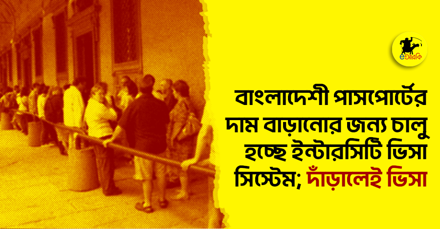 বাংলাদেশি পাসপোর্ট ইতোমধ্যে বিশ্বের সপ্তম দুর্বলতম পাসপোর্ট হিসেবে নিজের জায়গা শক্ত করে ফেলেছে। কিন্তু সম্ভাবনার বাংলাদেশ থেমে থাকে না। বিদেশে ভ্রমণ যখন দিন দিন অসম্ভবের দিকে, তখন সরকার চালু করলো, দেশের ভেতর ভ্রমণেই ভিসা সিস্টেম। পাসপোর্টের দাম বাড়াতেই চালু হচ্ছে এই ইন্টারসিটি ভিসা সিস্টেম। এখন থেকে ঢাকা থেকে চট্টগ্রাম যেতে হলে ভিসা লাগবে, আর সিলেট গেলে মাল্টিপল এন্ট্রি ভিসা নেওয়াই নিরাপদ বলে মনে করছেন বিশেষজ্ঞরা।