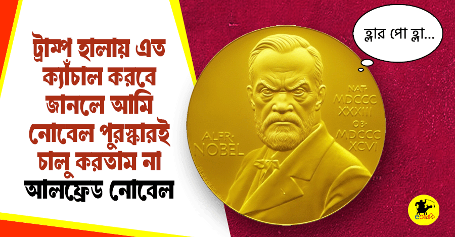 এদিকে ট্রাম্পের কর্মকাণ্ড দেখে নোবেল কমিটিও নাকি বিব্রত। বিশ্বস্ত সূত্রে জানা গেছে, নোবেল ভাই প্রস্তাব দিয়েছেন ভবিষ্যতে শান্তি পুরস্কারের সাথে একটি ‘চিল পিল অ্যাওয়ার্ড’ চালু করার। যেটা শুধু তারাই পাবেন, যারা পুরস্কার না পেলেও অন্তত দুই মাস চুপ থাকতে পারবেন।