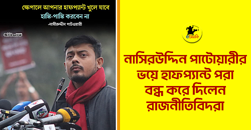 সম্প্রতি প্রতিপক্ষকে উদ্দেশ্য করে ‘ক্ষেপালে হাফপ্যান্ট খুলে যাবে, হাংকিপাংকি করবেন না’ এমন ঐতিহাসিক সতর্কবার্তা দিয়ে রাজনীতির ফ্যাশন জগতে নতুন আতঙ্ক ছড়িয়েছেন এনসিপির এমপি পদপ্রার্থী নাসিরউদ্দিন পাটোয়ারী। বক্তব্যটি ছড়িয়ে পড়ার পরপরই দেশের রাজনৈতিক অঙ্গনে শুরু হয়েছে প্যান্ট-সংকট, বিশেষ করে প্রতিপক্ষ নেতাদের মধ্যে।