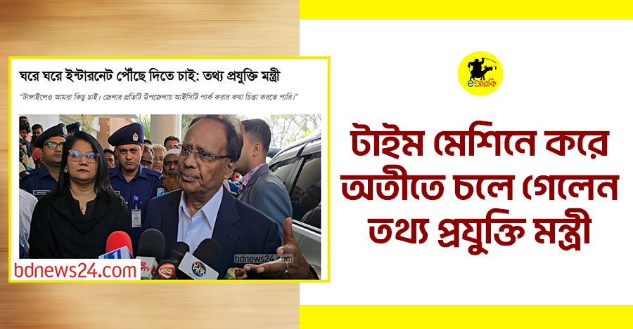 হুট করে দেশজুড়ে গুঞ্জন, দেশের বর্তমান তথ্য প্রযুক্তি মন্ত্রী নাকি টাইম মেশিনে চেপে সোজা নব্বইয়ের দশকে চলে গেছেন। প্রথমে অনেকে ভেবেছিল এটা কোনো নতুন স্টার্টআপ আইডিয়া। কিন্তু না, ঘটনা সিরিয়াস। কারণ সম্প্রতি তিনি গম্ভীর মুখে ঘোষণা দিয়েছেন, আমরা ঘরে ঘরে ইন্টারনেট পৌঁছে দিতে চাই।