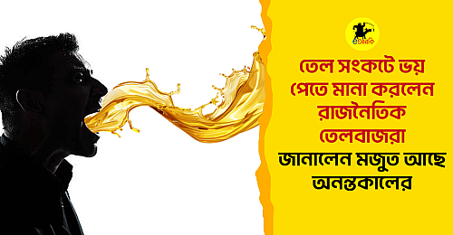 রাজধানীতে এক জরুরি প্রেস ব্রিফিংয়ে রাজনৈতিক তেলবাজ সমিতির কয়েকজন নেতা জানান, সাধারণ মানুষ ভুল জায়গায় তেল খুঁজছেন। পাম্পে গিয়ে লাইনে দাঁড়ানোর কোনো দরকার নেই, যত তেল লাগে আমাদের কাছে আছে। আমরা এতদিন নেতাদের তেল মেরে যে পরিমাণ স্টক বানিয়েছি, তা দিয়ে কয়েক প্রজন্ম চলতে পারবে। এ ব্যাপারে এক তেলবাজ ভাই আমাদের বলেন, জনগণ ভয় নেই, রাজপথ ছাড়িনি। আমরা থাকতে যদি দেশে তেলের সংকট হয় তাহলে লা’নত আমাদের উপর। এতদিন নেতাদের তেল মেরে এসেছি, এবার প্রয়োজনে জনগণকেও মারবো।