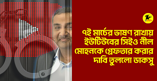 ৭ই মার্চের ভাষণ যেখানে নিষিদ্ধ ঘোষিত এই সমাজে, যে ভাষণ শোনা পাপ, যে ভাষণ বাজানো অন্যায়, যে ভাষণের কথা চিন্তা করাটাই একটা চিন্তা অপরাধ, সেই ভাষণ কিভাবে ইউটিউবে থাকতে পারে? ৭ই ভাষণ ইউটিউবের মত একটা প্লাটফর্মে কিভাবে বীর দর্পে ভেসে বেড়াতে দেখে ক্ষেপে গিয়েছেন ডাকসুর একাধিক সদস্য। আজ ৮ মার্চ ইউটিউব সিইও নীল মোহনকে গ্রেফতারের দাবিতে একটি কাল্পনিক সংবাদ সম্মেলন করেছেন তারা। একটি সম্পূর্ণ ভূয়া তথ্যসূত্র থেকে এমনটাই নিশ্চিত হয়েছে eআরকি। একই সাথে দৃঢ় কন্ঠে জানিয়েছে হয় ইউটিউব থাকবে না হয় এই ভাষণ থাকবে, দুইটার এক সাথে সহাবস্থান কোনো ভাবেই মেনে নেয়া যায় না।