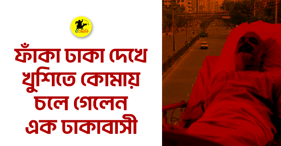 ঈদের ছুটিতে ফাঁকা ঢাকা দেখে চরম মানসিক ও শারীরিক ধাক্কা খেয়ে কোমায় চলে গেছেন রাজধানীর এক বাসিন্দা। প্রতিদিনের যানজট, হর্ন, ধুলো, রিকশার সাথে সিএনজির প্রেম-সংঘর্ষ আর বাসের হেলপারদের গলা ফাটানো ডাকের মধ্যে বড় হওয়া এই নাগরিক হঠাৎ করেই ঢাকার রাস্তা ফাঁকা দেখে নিজের মস্তিষ্ককে আর নিয়ন্ত্রণে রাখতে পারেননি।