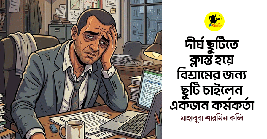 ঈদ উল ফিতরের সাত দিনের ছুটি, মাঝের দু'দিন কর্মদিবসের সাধারণ ছুটি, পরের আরও তিন দিনের ছুটি কাটিয়ে ক্লান্ত হয়ে গিয়েছেন এক কর্মকর্তা। তাই বিশ্রাম চেয়ে ম্যানেজারের কাছে আরও এক দিনের ছুটি চেয়েছেন তিনি। তাঁর ভাষ্যমতে যেকোনো টানা কাজ ক্লান্তি বয়ে আনে। ছুটি নেয়ার মত একটা কঠিন কাজকে তিনি যেভাবে ‘নরমালাইজ’ করে ফেলেছেন, বরং বলা যায় একরকম উদযাপন করেছেন; ধারাবাহিকতা ধরে রেখেছেন, আর দশটা মানুষের মত একঘেয়ে একই কাজ করায় তাই তারও আজ মন শ্রান্ত। শতকিছু হলেও তিনিও তো মানুষ নাকি!
