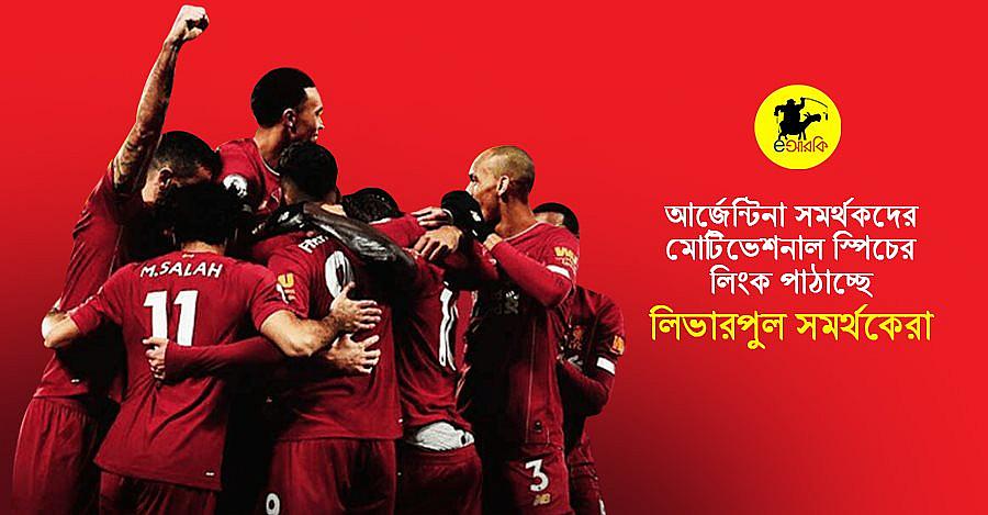 কিন্তু, তবুও তাঁদের মানবিকতায় এতটুকু ফাটল ধরেনি এখনো। নিজেদের আনন্দের দিনে আরেক হতাশ সমর্থকগোষ্ঠি আর্জেন্টিনার কথা ভুলে যাননি তারা। আর তাই তো ফেসবুকে নিজেদের পরিচিত-অপরিচিত সকল আর্জেন্টাইন সমর্থকদের ইনবক্সে মোটিভেশনাল স্পিচের লিংক পাঠাচ্ছেন লিভারপুল সমর্থকেরা। এসব স্পিচের বেশিরভাগই বিভিন্ন মোটিভেশনাল সেলিব্রেটিদের ফেসবুক স্ট্যাটাস থেকে কপি-পেস্ট। অনেকে আবার বিভিন্ন পেজে কুড়িয়ে পাওয়া মোটিভেশনাল পোস্টগুলোও গণ-ফরোয়ার্ড করে দিচ্ছেন।