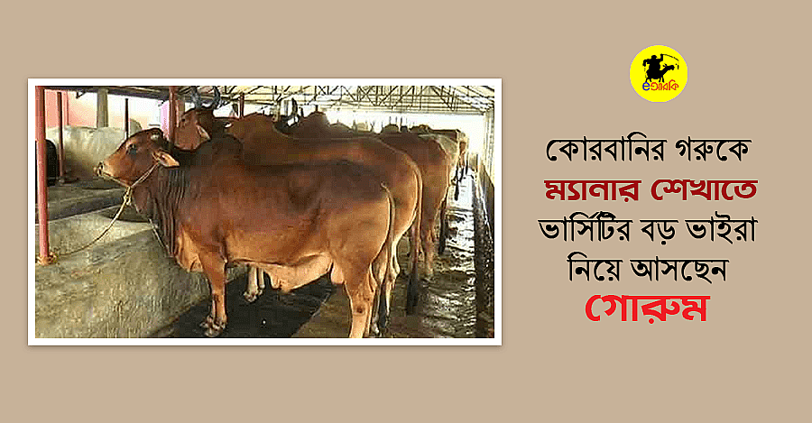 শুধু ভার্সিটির জুনিয়র না, কোরবানির গরুও যথেষ্ট ম্যানার জানে না। কোরবানির সিজনে তাই গরু ম্যানেজ করা জাতীয় সমস্যায় পরিণত হয়েছে। বাজার থেকে বাসায় আনার সময় গরু হাঁটতে চায় না, যাকে তাকে ঢুস মেরে দেয়, দঁড়ি ছিড়ে অনিশ্চিত যাত্রা তো খুবই কমন বিষয়। কোরবানির গরুকে ম্যানার শিখিয়ে একদম নম্র ভদ্র, শান্ত হিসেবে গড়ে তোলাই পলিটিক্যাল বড় ভাইদের 'গোরুম' এর কাজ, এমনটাই জানালেন গোরুমের এক উদ্যোক্তা।