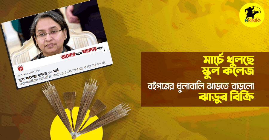 তবে সবার মতো বাজার থেকে ঝাড়ু কিনলেও বই মোছা শেষে সেটি লুকিয়ে রাখবেন বলে জানালেন দশম শ্রেণীর শিক্ষার্থী আরিফ আদনান। তার এই সিদ্ধান্তের কারণ কি, এমন প্রশ্নের উত্তরে আদনান বলেন, ‘'স্কুল খুলবে মানে পরীক্ষাও হবে। পরীক্ষা হবে মানে রেজাল্টও দেবে। আর রেজাল্ট দিলে আম্মা যদি হাতে ঝাড়ু পায়...’