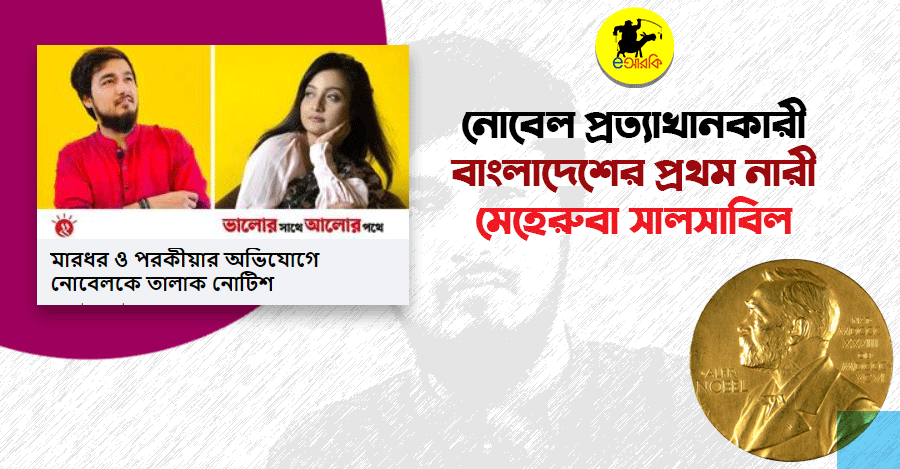 ভারতের জি বাংলার ‘সারেগামাপা’ রিয়েলিটি শোর মাধ্যমে পরিচিতি পেয়েছেন বাংলাদেশের মাইনুল আহসান নোবেল। ২০১৯ সালের ১৫ নভেম্বর গায়ক নোবেলকে ভালোবেসে বিয়ে করেন সালসাবিল মাহমুদ। তবে নোবেল পাওয়ার দুই বছরের মাথায় নোবেল ফিরিয়ে দিচ্ছেন সালসাবিল মাহমুদ— এমনটাই জানা যাচ্ছে সামাজিক মাধ্যম থেকে।