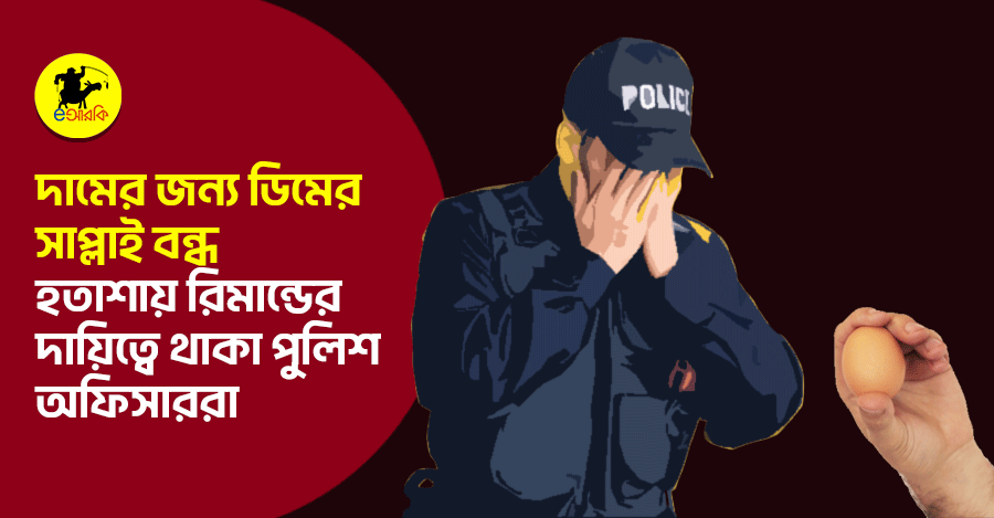 হুট করে ডিমের বাজারে লেগেছে আগুন। ডজনপ্রতি প্রায় ১৫-২০ টাকা বেড়ে যাওয়ায় অনেকে নিজের খাদ্যতালিকা থেকে বাদও দিতে শুরু করেছেন ডিমকে। তবে ডিমের দামের এই উর্ধ্বগতির জন্য সবচেয়ে বেশি হতাশায় ভুগছেন আসামীদের রিমান্ডের দায়িত্বে থাকা পুলিশ অফিসাররা। কার্যকরী রিমান্ড সেশনের জন্য সবচেয়ে উপযোগী এই উপাদানটির দাম এমন নাগালের বাইরে চলে যাওয়াতে তাদের বেশ কয়েকজন হতাশাও প্রকাশ করেছেন।