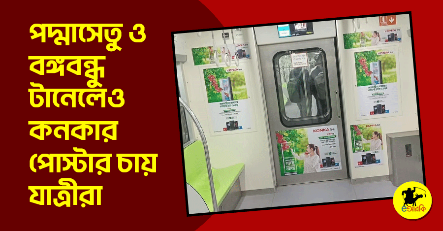 মেট্রোরেলের যুগে প্রবেশ করেছে বাংলাদেশ। উত্তরা থেকে মতিঝিল পর্যন্ত যাত্রী আনা নেয়া করছে মেট্রোরেল। মেট্রোতে চড়ার পর থেকে গন্তব্যে পৌছানো পর্যন্ত অপেক্ষা করতে হতো যাত্রীদের। বসে থাকা বা গ্রীল ধরে দাঁড়িয়ে থাকা ছাড়া কিছুই করার থাকতো না তাদের। উদাস বসে থাকতে থাকতে বিরক্ত হতেন যাত্রীরা। তাদের এই বিরক্তি দূর করতে উদ্যোগ নিয়েছে কর্তৃপক্ষ। তাদের সহায়তায় এগিয়ে এসেছে কনকা ফ্রিজ। মেট্রোরেলের প্রবেশ ও বহির্গমন পথ সহ, বসার চেয়ার, দেয়াল সব জায়গা ছেয়ে গিয়েছে কনকা ফ্রিজের পোস্টারে। অলস বসে থাকার চেয়ে নান্দনিক সব পোস্টার উপভোগের এই সুযোগ বেশ ইতিবাচকভাবে গ্রহণ করেছে মেট্রোরেলের যাত্রীরা। তবে আক্ষেপ প্রকাশ করেছেন পদ্মাসেতু ও বঙ্গবন্ধু টানেলের নিয়মিত যাত্রীরা।