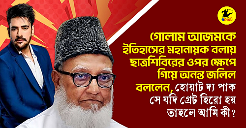 ছাত্রশিবিরের পত্রিকা ছাত্র সংবাদ কয়েকদিন আগে একটি লেখা পাবলিশ করে। যেখানে রাজাকারকূলের শিরোমনি গোলাম আজমকে ইতিহাসের মহানায়ক বলে আখ্যায়িত করা হয়! এই ধরনের ট্যাগে রীতিমত রেগে ফায়ার হয়ে গেছেন বাংলাদেশের আরেক মহানায়ক অনন্ত জলিল। নিজের এক বক্তব্যে তিনি রেগে গিয়ে বলেন, গোলাম আজম যদি হিস্টোরির গ্রেট হিরো হয় তাহলে আমি কী? আই এম হোয়াট? আমি কি গেরেট হিরো না?