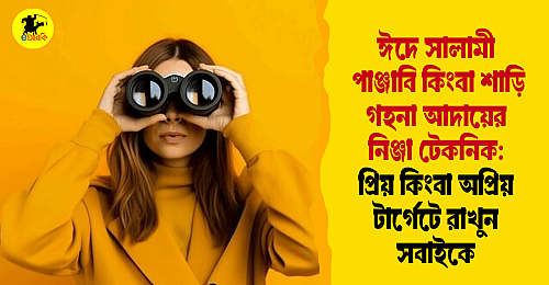 ঈদ আসতে খুব বেশি দিন বাকি নেই। আপনার বয়স ১৪–২৫ হোক, ৩০ হোক বা ৪০ হোক, ছেলে বা মেয়ে যাই হন না কেন, ঈদে অন্যদের কাছ থেকে সালামী, পাঞ্জাবি কিংবা শাড়ি-গহনা হাতিয়ে নেওয়ার বিষয়টি কোনোভাবেই বাদ দেওয়া যাবে না। প্রিয় মানুষরা তো আছেই, তবে অপ্রিয়দেরও বাদ দিলে চলবে না। কারণ ঈদের মৌসুমে সম্পর্কের চেয়ে গুরুত্বপূর্ণ বিষয় হলো, কার কাছ থেকে কীভাবে কী আদায় করা যায়। তাই প্রিয় হোন কিংবা অপ্রিয়, টার্গেটে রাখতে হবে সবাইকেই। আর এই মিশনে সফল হতে হলে আপনাকে জানতে হবে কিছু পরীক্ষিত নিনজা টেকনিক।