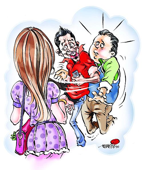 যেন আমার কাজই বুদ্ধি দেওয়া। আজও রিয়াদের ডাকে সাড়া দিয়ে ওর সঙ্গে যেতে হচ্ছে। প্রকৃতির ডাক চেপে রাখা যায়, কিন্তু রিয়াদের ডাকে সাড়া না দিলে ২০ কেজি ওজনের ঘুষি খেতে হবে। রিকশায় উঠেই রিয়াদ এমনভাবে ওর প্রেমিকাকে ফোন দিল, যেন রিকশায় উঠলেই প্রেমিকাকে ফোন দিতে হবে। আর কথা বলার সে কী কায়দা! ‘হ্যালো জানু, কী কর? ভাত খাও? কী দিয়ে খাও? আরে গরুর মাংস তো আমারও খুব প্রিয়, কী রঙের গরু? সেকি! রং তো জানতেই হবে। আমি আবার লাল গরুর মাংস খাই না, আমাকে লাল গরু গুঁতো দিয়েছিল তো, কোথায় গুঁতো দিয়েছিল? ইয়ে... জানু, আমি রাস্তায় আছি তো, অনেক শব্দ, কথা শুনতে পাচ্ছি না।’